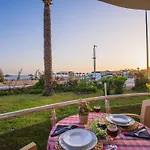 Οι εγκαταστάσεις παραλίας περιλαμβάνουν ξαπλώστρες και παρασόλια.